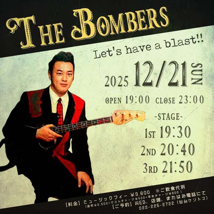 『THE BOMBERS』による、一夜限りの仙台ケントス・ジャンボリーナイト開催です♪