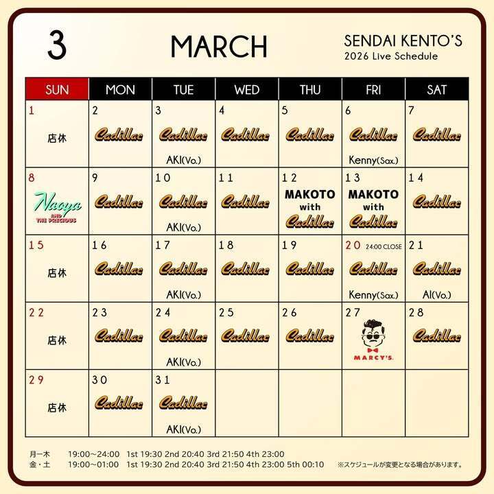 🎶仙台ケントス3月ライブスケジュール🎼