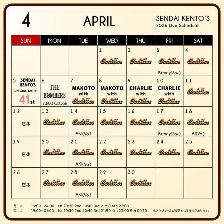 🎶仙台ケントス4月ライブスケジュール🎼